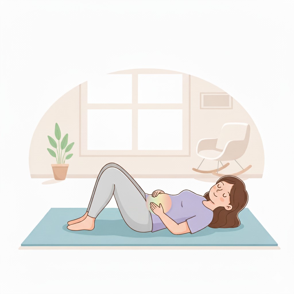 吸氣時讓肚子微微鼓起;吐氣時輕輕拉平下腹(像拉上拉鍊)。