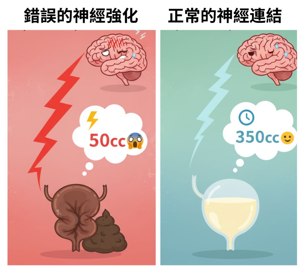 打破 LTP:用數據(排尿日記)告訴大腦:「這點尿量還不需要發警報。」藉此削弱過度敏感的神經連結。